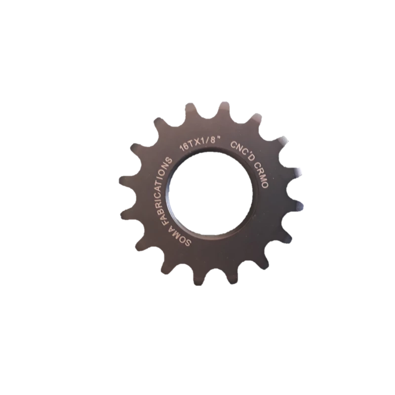 Pignon fixe Soma pour piste, fixie, single speed, BMX, 16 dents, filetage BC1.37″x24T, matière: cromoly traité contre les frottements et l’usure, pour une chaine 1/8″, couleur: noire. Il est neuf dans son emballage